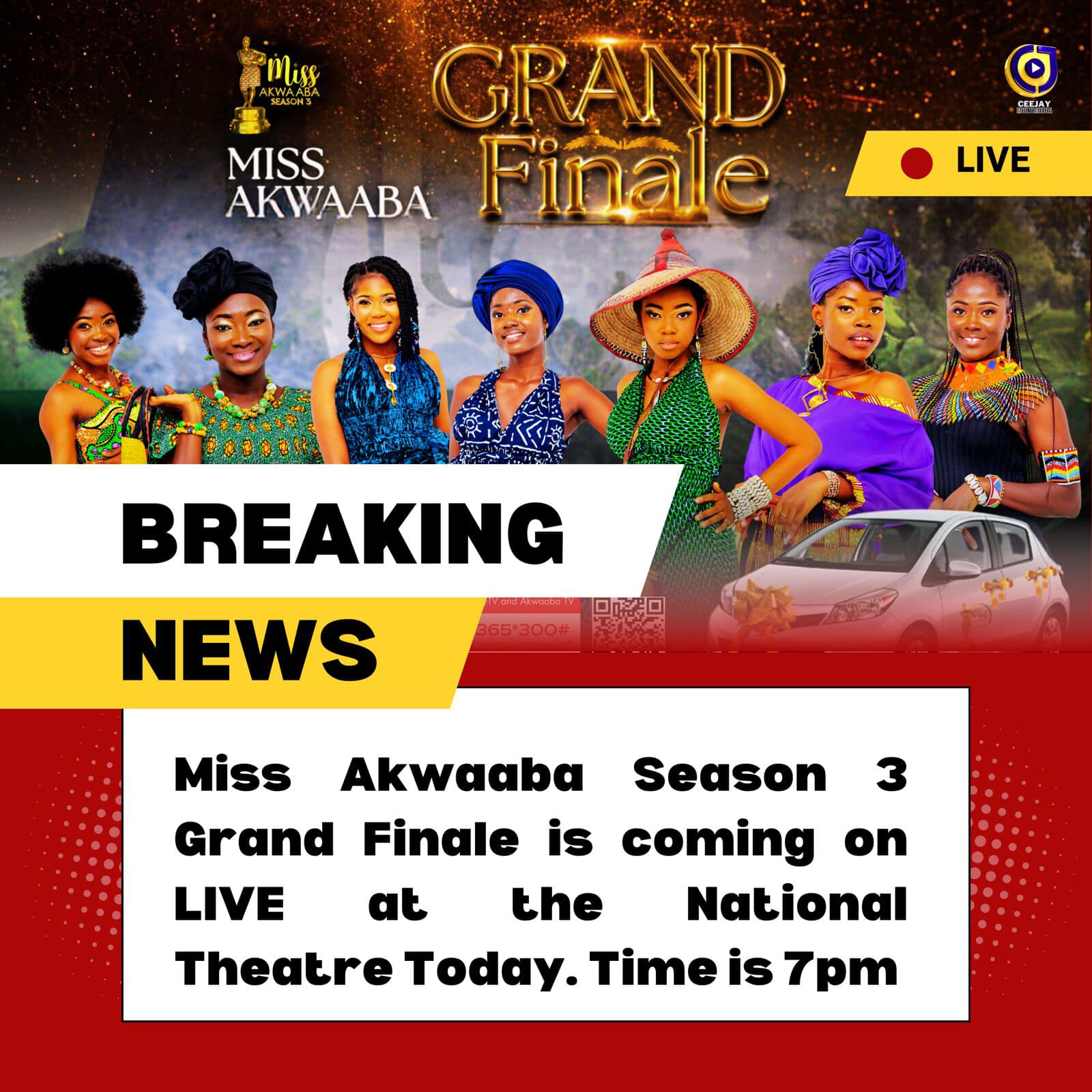 Miss Akwaaba Season 3 grand finale is coming on live at the National Theatre on Sunday 11th August, 2024 @7pm sharp. Grab a ticket for only 50 cedis at Ceejay Multimedia, Lapaz or at the National Theatre, Accra